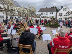Ostern steht vor der Tür und der Heimatverein Gräfenhausen/ Schneppenhausen e. V. putzt Gräfenhausen dafür richtig raus. Der Heimatverein hat in diesem Jahr wieder den Brunnen und die Platanen in der Hauptstraße geschmückt. Bei trübem Wetter sorgte die Blaskapelle vom Musikverein für frühlingshafte und beschwingte Stimmung zur Einweihung des Brunnens am vergangenen Sonntag.